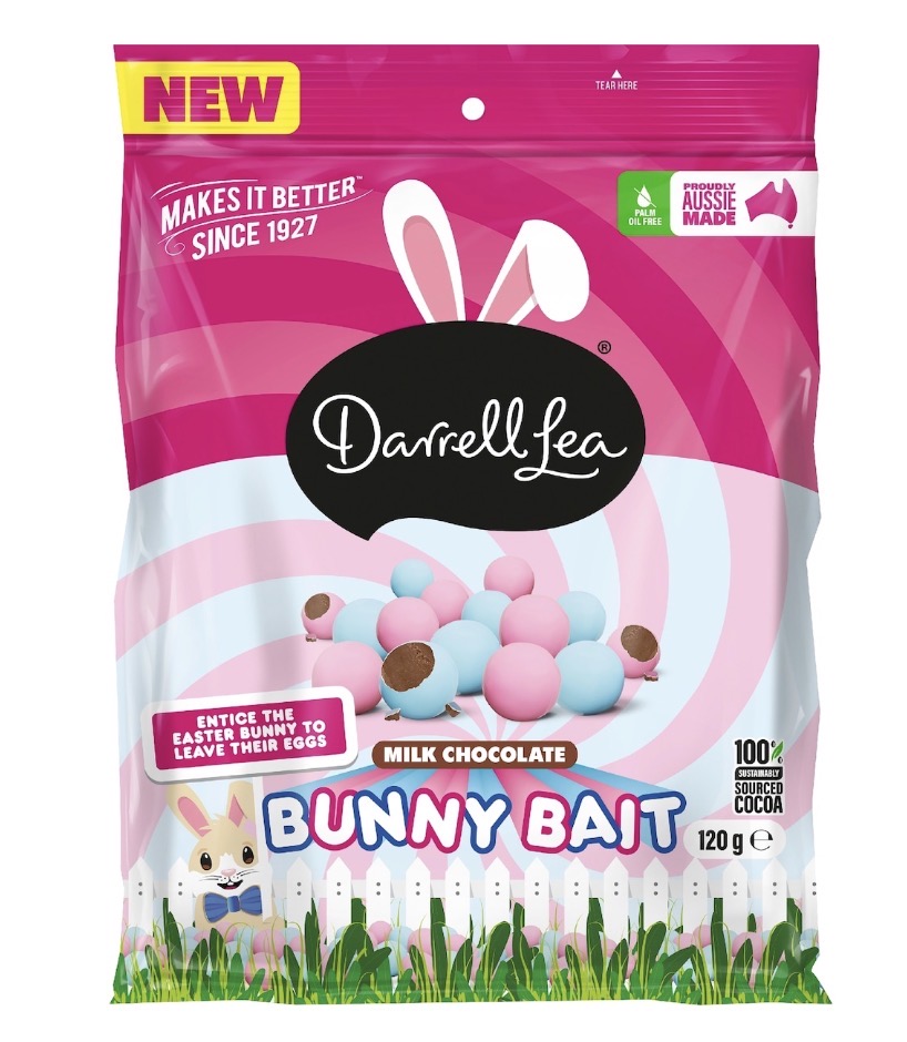 Darrell Lea Bunny Bait 120g is a seasonal Easter mix built around Darrell Lea favourites shaped and themed for the hunt. The bag brings together chocolate pieces and soft lolly shapes in pastel Easter colours, giving a ready made filler for baskets, egg hunts and kids party bags. At 120g the pack suits single baskets, teacher gifts, co worker desks and sharing at home. Store in a cool dry place and keep sealed between servings. Sweetsworld lists Darrell Lea Bunny Bait alongside eggs, bunnies and hot cross treats during the Easter window for shoppers building themed Easter hampers across the country. Ships from SweetsWorld in Australia.