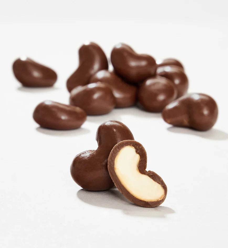 Milk Chocolate Cashews 100g is a resealable pack of roasted cashews coated in smooth milk chocolate. Each nut keeps its crunch inside a generous chocolate shell, giving a creamy chocolate finish with a buttery nut centre. The 100g pack is a handy share size for a weekend grazing board, a cheese board add-on, an after-dinner sweet, a desk snack or a chocolate gift box filler. Scatter a handful over a dessert platter, tuck a pack into a gift hamper or keep a stash in the pantry for quiet treats. A grown-up chocolate snack. Ships from SweetsWorld in Australia.