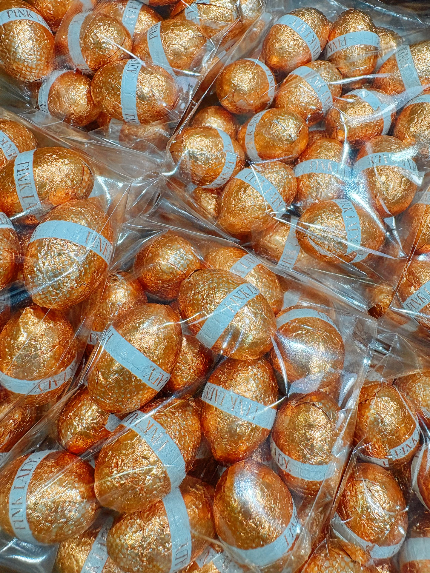 Pink Lady Caramel Filled Mini Eggs 200g is a resealable bag of small chocolate mini eggs with a soft caramel filling, wrapped in pastel foil. Each egg has a smooth chocolate shell around a runny caramel centre, giving a rich, buttery bite that fits the Easter season but works year round. The 200g pack suits Easter baskets, egg hunts, grazing tables, dessert boards, chocolate gift boxes and lunchbox surprises. Scatter across a platter, tuck into a hamper or share from a bowl at a family gathering. A pretty Easter-style chocolate treat. Ships from SweetsWorld in Australia.