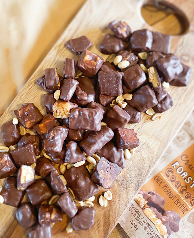 Take our signature Peanut Brittle, made by selecting quality roasted peanuts and mixing with a sticky caramelised toffee mixture. Then roller cut into the perfect sized squares and coat in melted milk chocolate. Indulge yourself today and see what makes Kellys Candy Co. the best in the business!