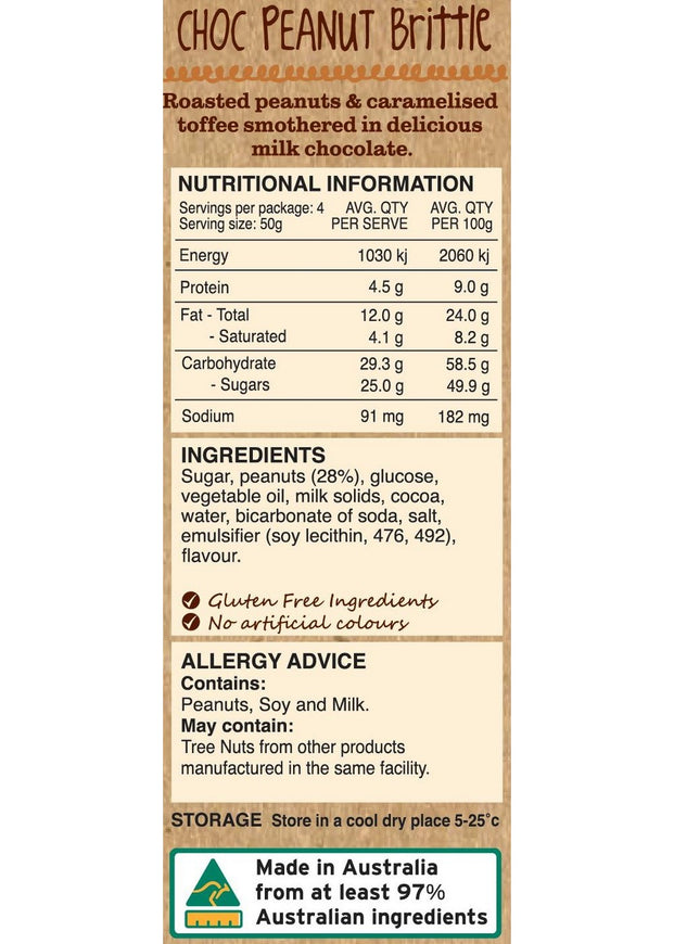 INGREDIENTS: Sugar, peanuts (28%), glucose, vegetable oil, milk solids, cocoa, water, bicarbonate of soda, salt, emulsifier (soy lecithin, 476, 492), flavour.